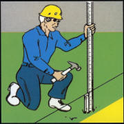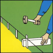 Intermediate stakes are driven to the bottom of the line at approximately 2 foot centers. Use extra precaution to see that the stakes are aligned. |